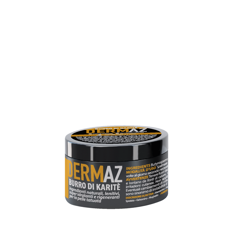 Puro burro ottenuto dalla spremitura dei semi di karitè senza l’uso di solventi di estrazione. E’ un ottimo balsamo per tatuaggi realizzato esclusivamente con ingredienti di origine naturale, lenitivi, super idratanti e rigeneranti per la pelle.